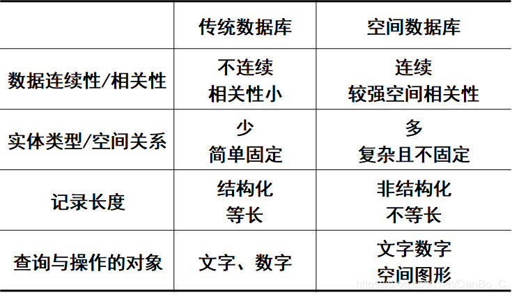 用一条记录表达一个空间对象,它的数据项可能是很长的,例如,1条弧段的坐标,它可能是2对坐标,也可能是10万对坐标。 非结构化是空间数据难以直接采用通用的关系型 数据库管理系统的主要原因。