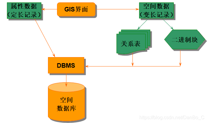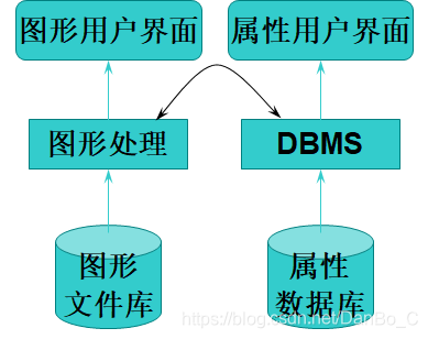 - 两个子系统分别存储和检索空间数据和属性数据,使用一种标识符将两者联系起来。
