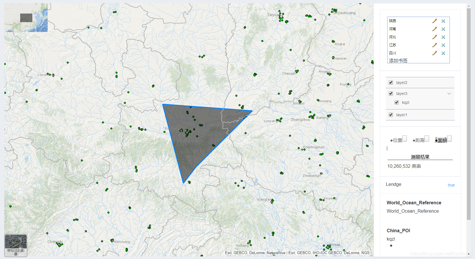 书签+图层列表+测量工具+图例+鹰眼+地图切换